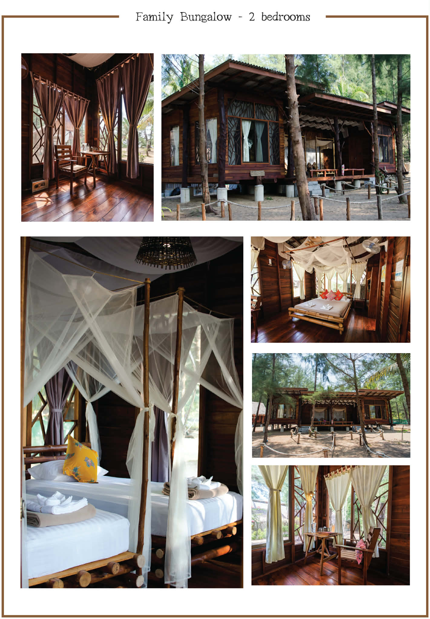We wish to provide our valued guests with a first rate experience while also protecting the environment of Koh Phrathong. So at our resort, we prize environmental sustainability. All of our bungalows use solar panels to create electricity without disturbing the environment. As a result of our commitment to environmental sustainability, our guests will be refreshed by unspoiled natural surroundings.• 24-hour electricity for lights and fans